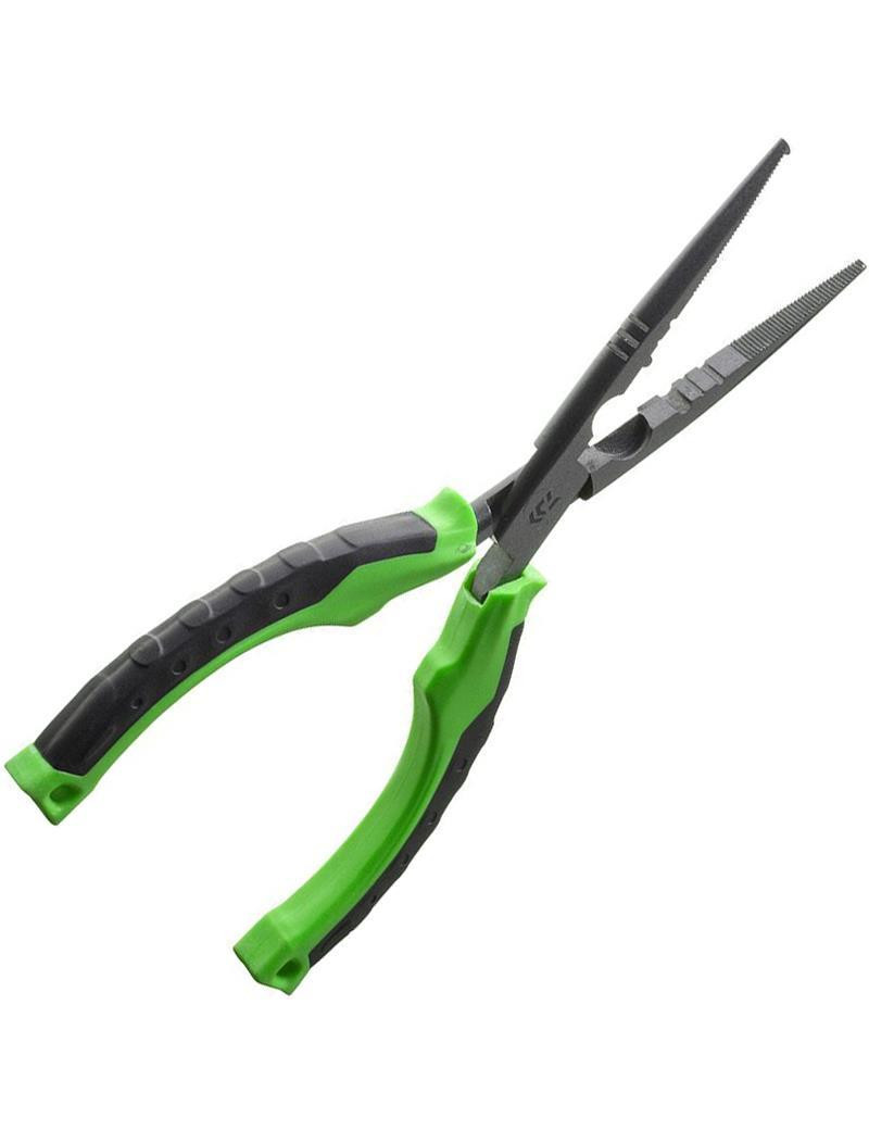 Une pince multi usages Prorex par Daiwa pour ouvrir les anneaux brisés, dégorger, couper, sleeves, resserrer les plombs fendus, et une multitude de petits travaux. Poignées gainées avec petits picots ergonomiques pour une meilleure prise en main. Esthétique Prorex caractéristique « vert-noir »