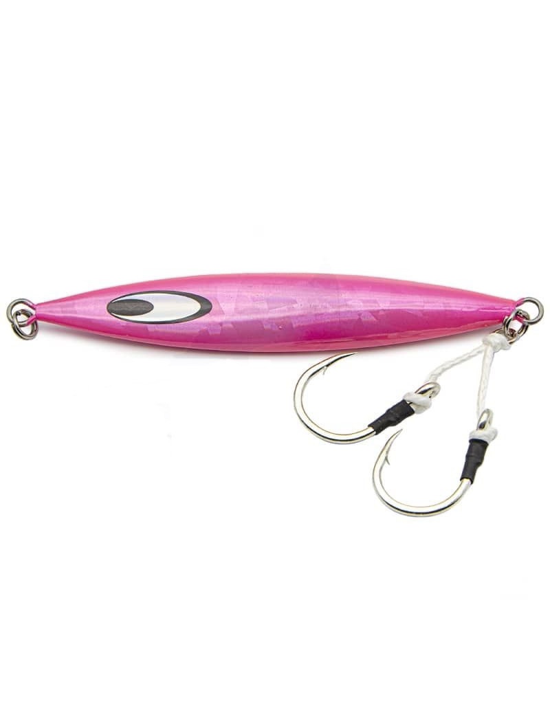 Ce jig au profil effilé offre un équilibrage centré qui en fait un slow jig parfait pour les prospections efficaces sur le fond. En effet, son design lui permet de descendre rapidement dans la couche d'eau sans perdre de temps ni ralentir de trop dans le courant. Lors des animations verticales et plus particulièrement lors des phases de relaché, il se comporte comme un slow jig typique en papillonnant. Il est livré avec un double assist au montage fort en tresse et avec des hameçons VMC 7264.